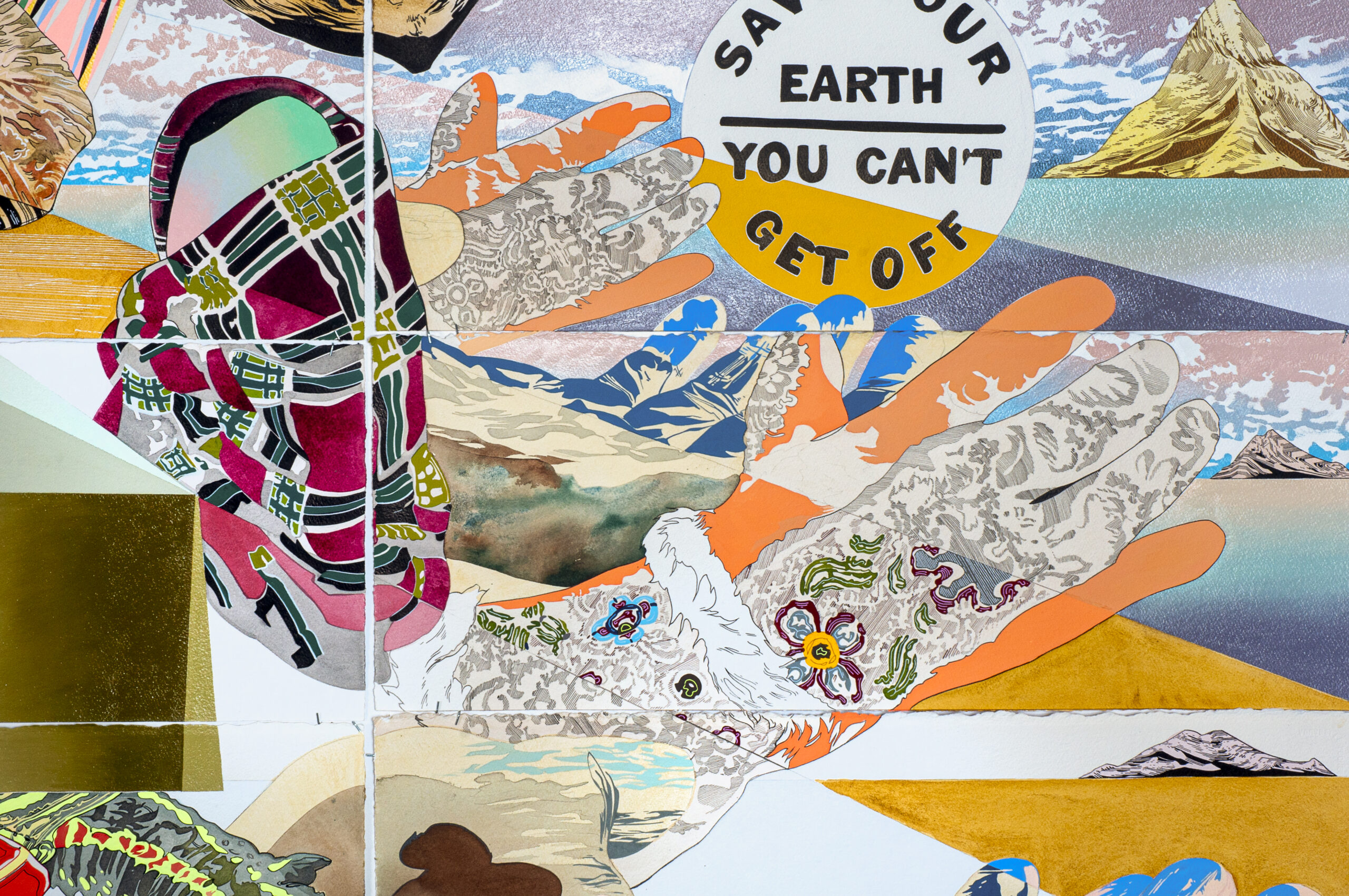 Blending vibrant imagery with cultural symbolism, Carlson’s work reimagines landscapes as layered spaces of meaning.