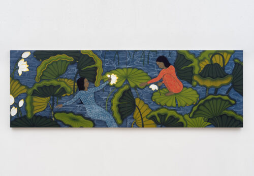 As noted by Forbes, “Carlson’s imagined scenes do not depict specific places, but rather consider how landscapes are composites of histories, relationships, and power. Grounded in Anishinaabe understandings of space and time, the works in this exhibition reflect on how land carries memories of colonial expansion and violence, as well as Indigenous presence and resistance.”