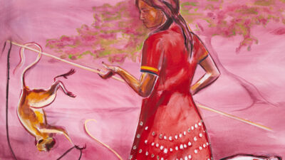 Julie Buffalohead makes figurative paintings that engage current events, Native American history, and personal narratives. Using metaphor and humor, she depicts interactions between humans—often women—and a cast of animals common to her ancestral folklore. Bold, gestural mark-making and a command of color and space distinguish Buffalohead’s transportive works. Figures are seen suspended within deeply hued … Continue reading Julie Buffalohead