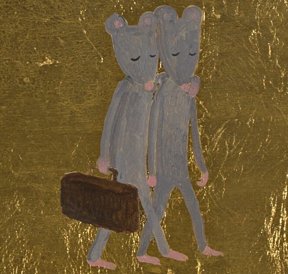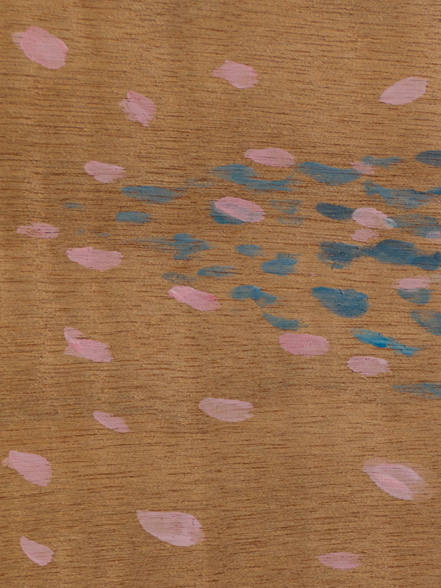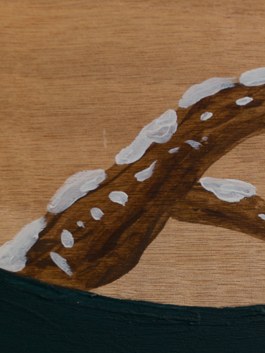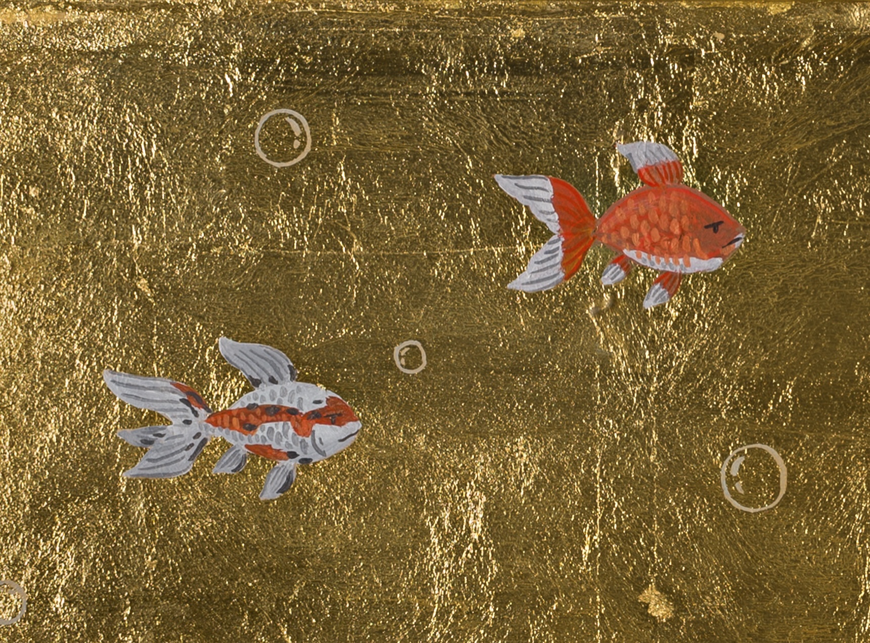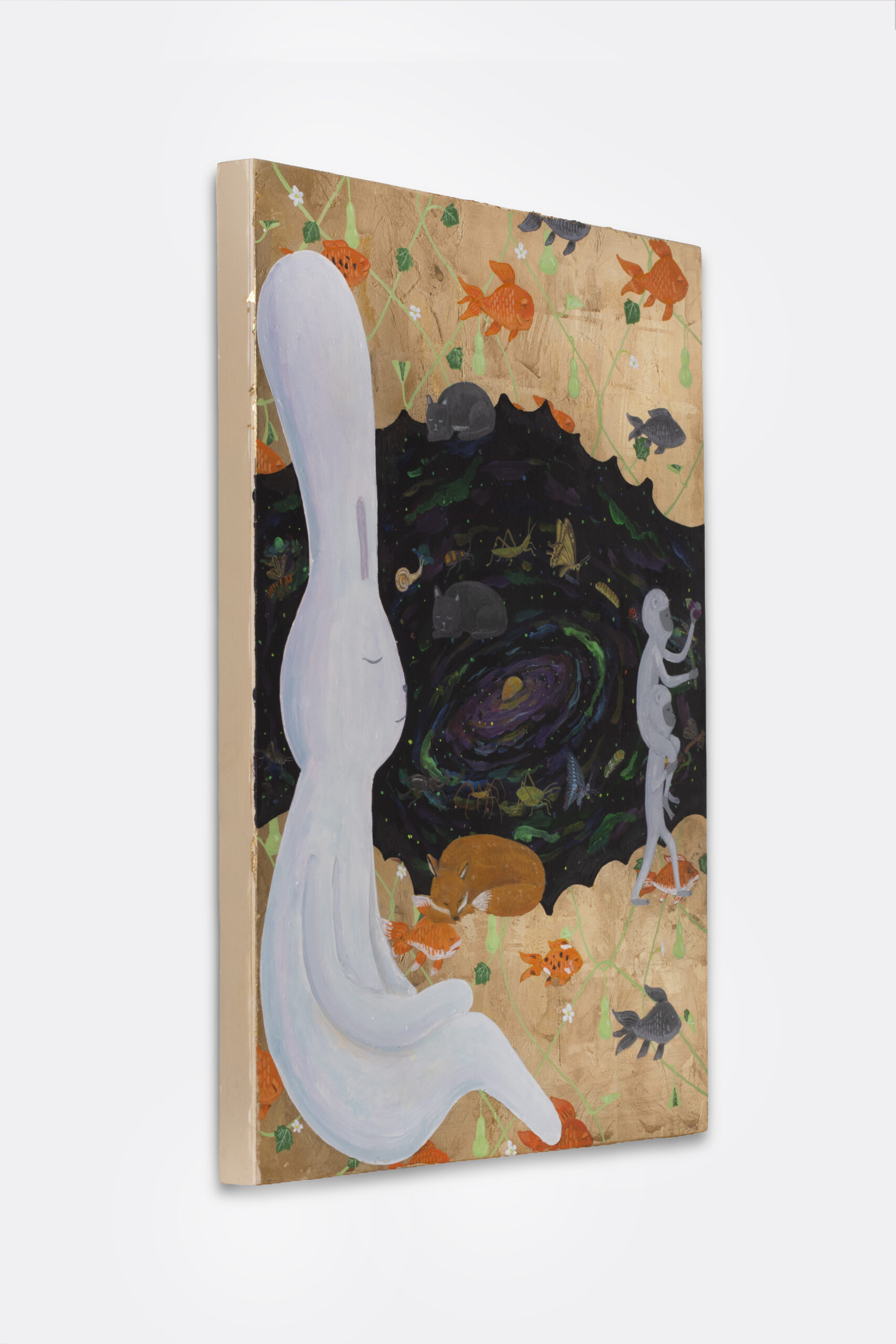 Acrylic and mixed metal leaf on board, painted on both sides