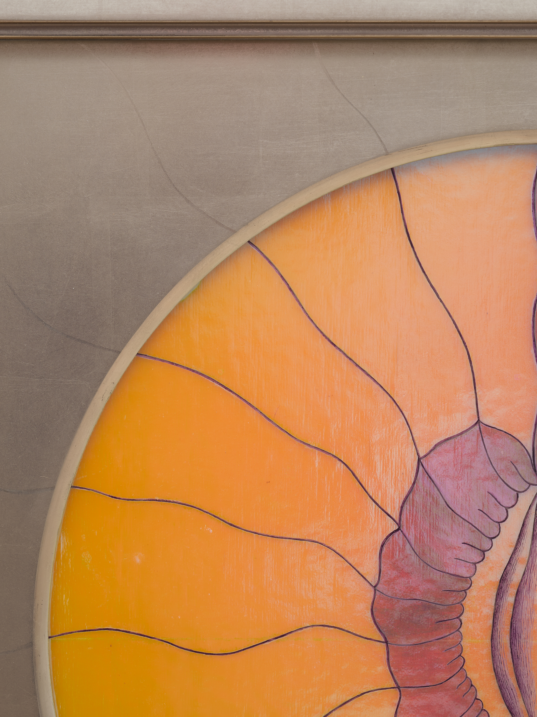 China paint and lustre on glass, silver leaf on wood frame lightbox