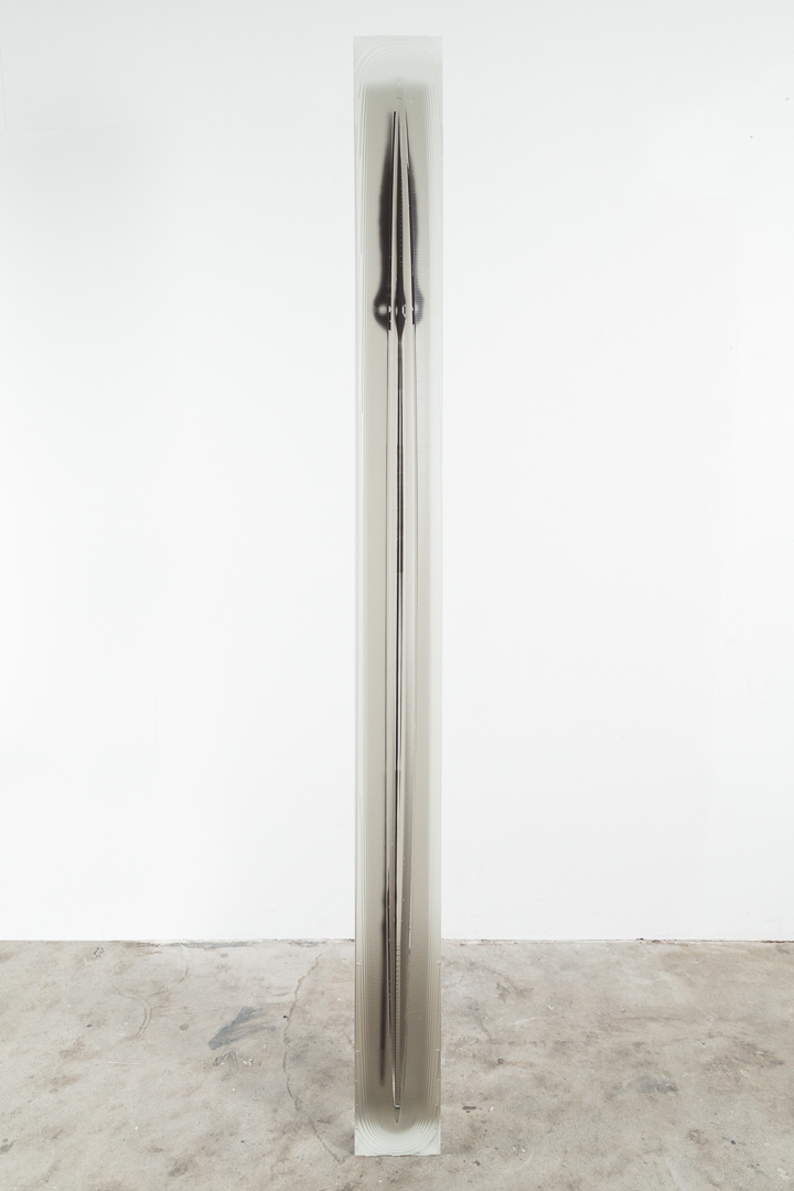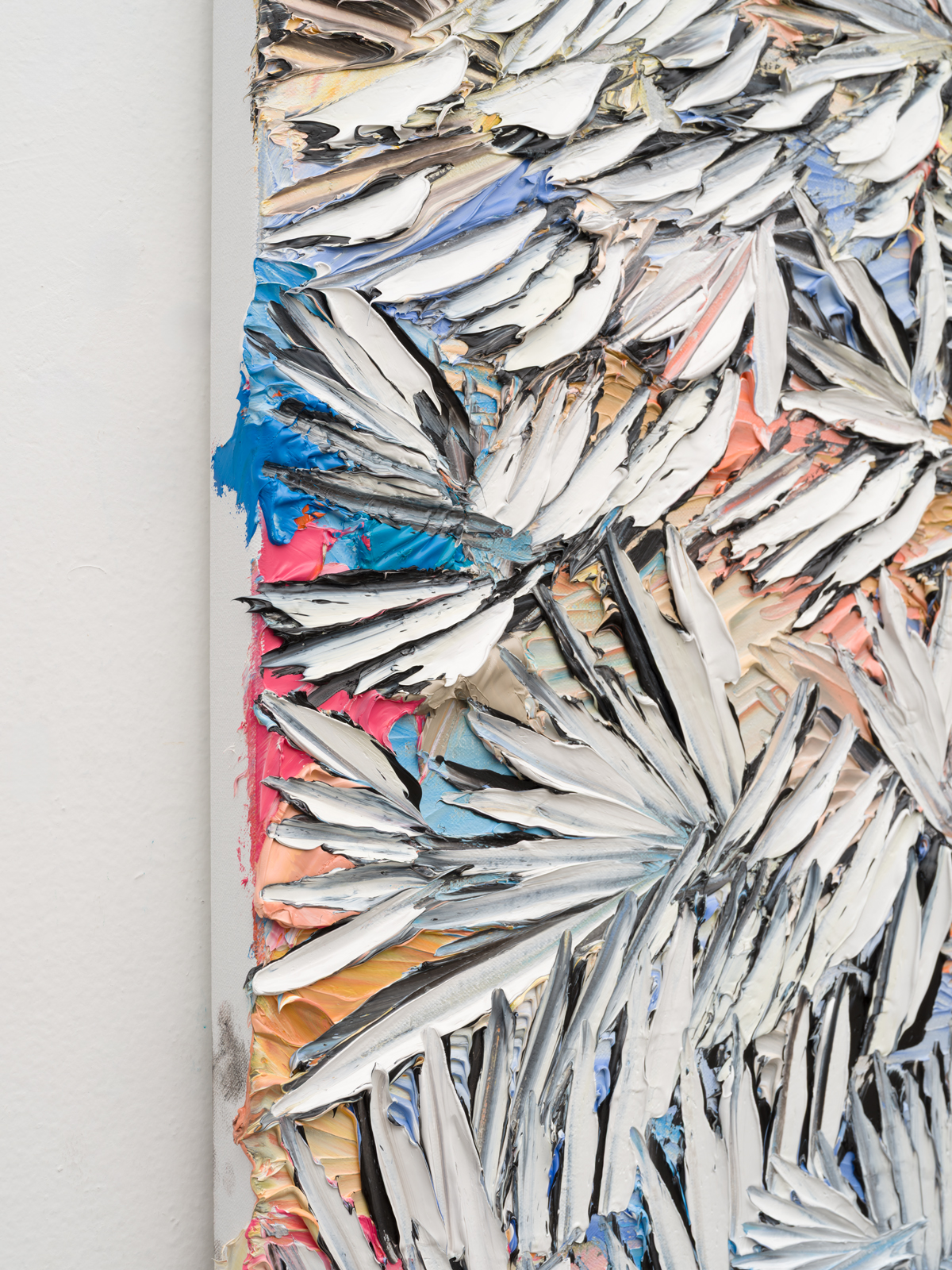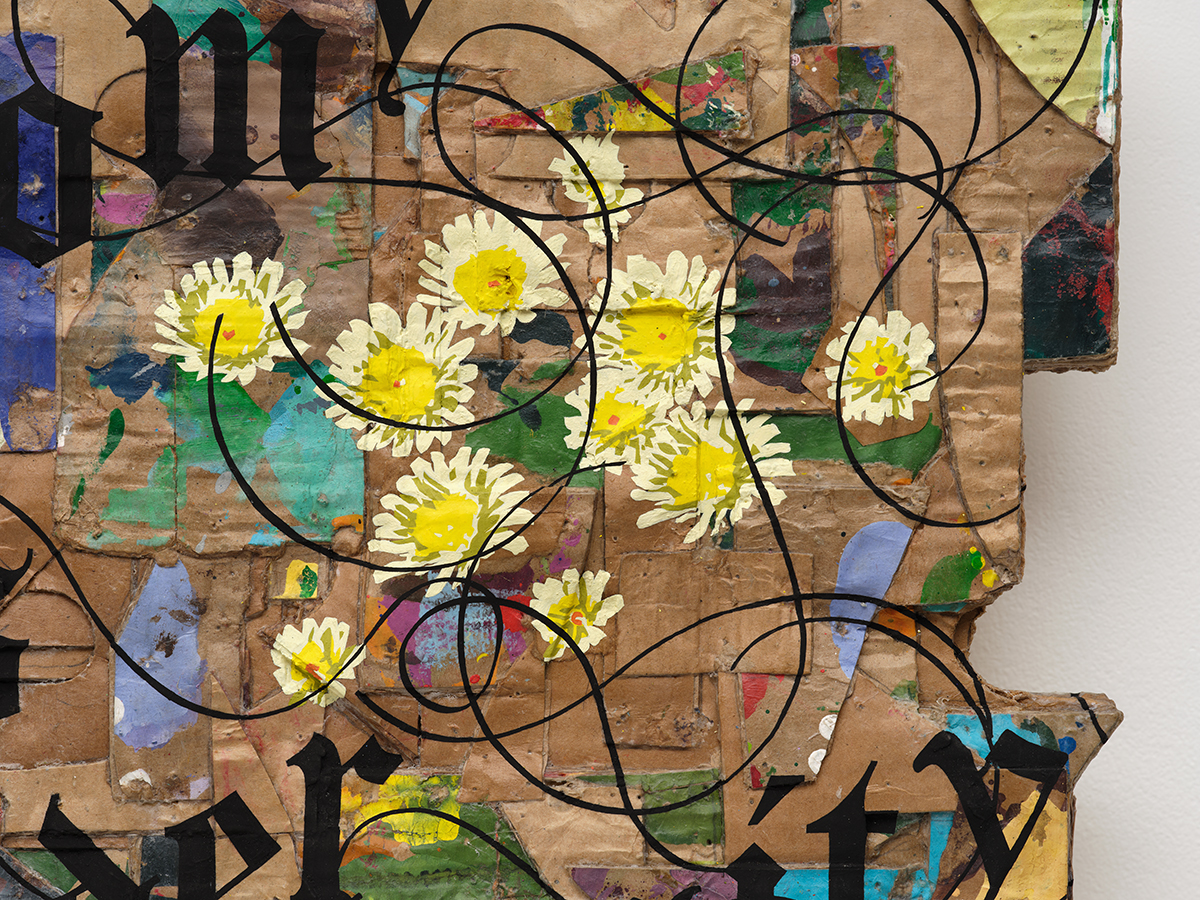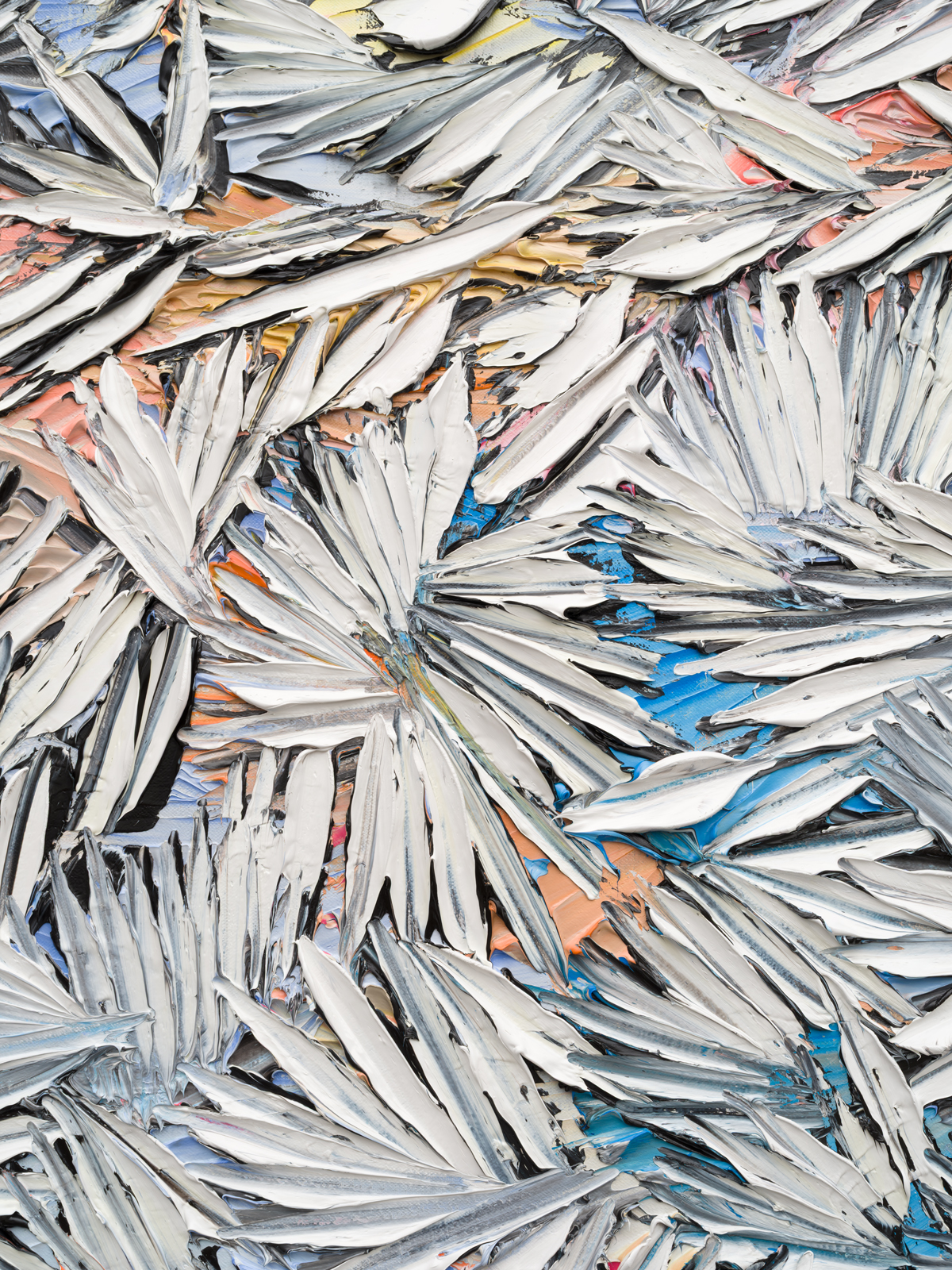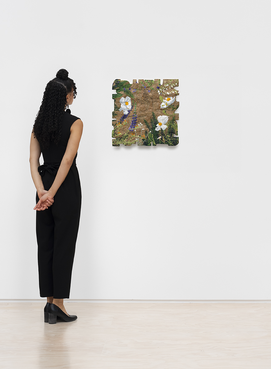 Sam Falls memorializes organic matter in ceramics that embody time, chance, and process. His new wall works fuse botanicals with melted glass, transfiguring plant life into luminous fossils.