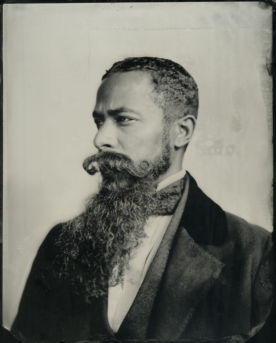 Wet-plate Collodion tintype from an original made by Rob Ball for "Lessons of the Hour" mounted on Tulipwood frame