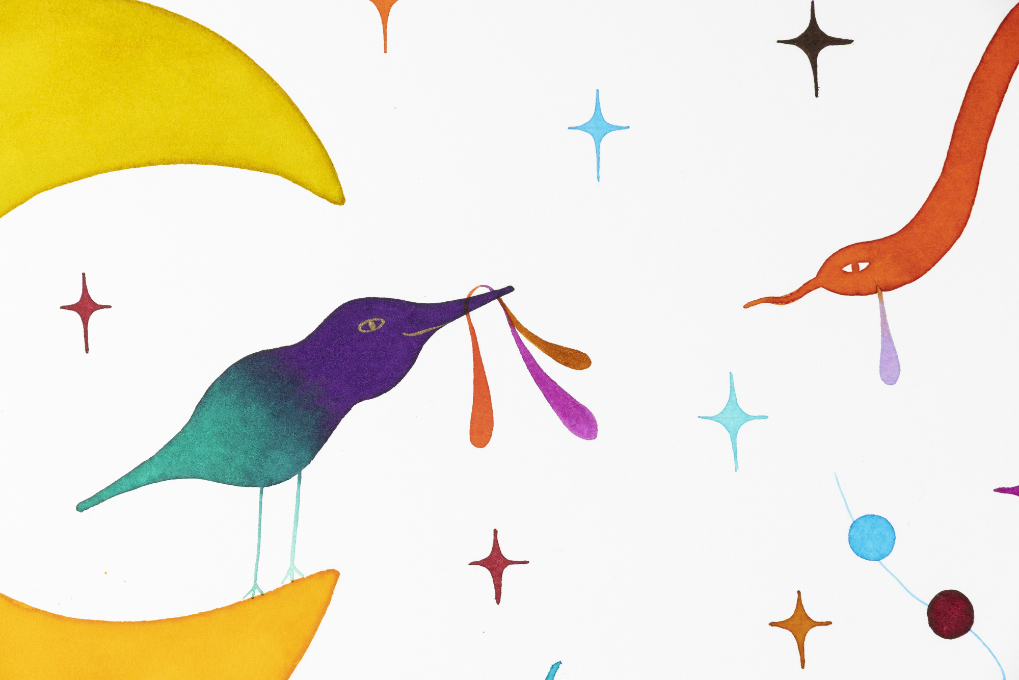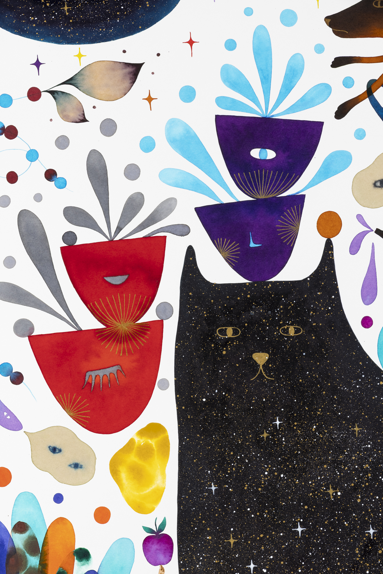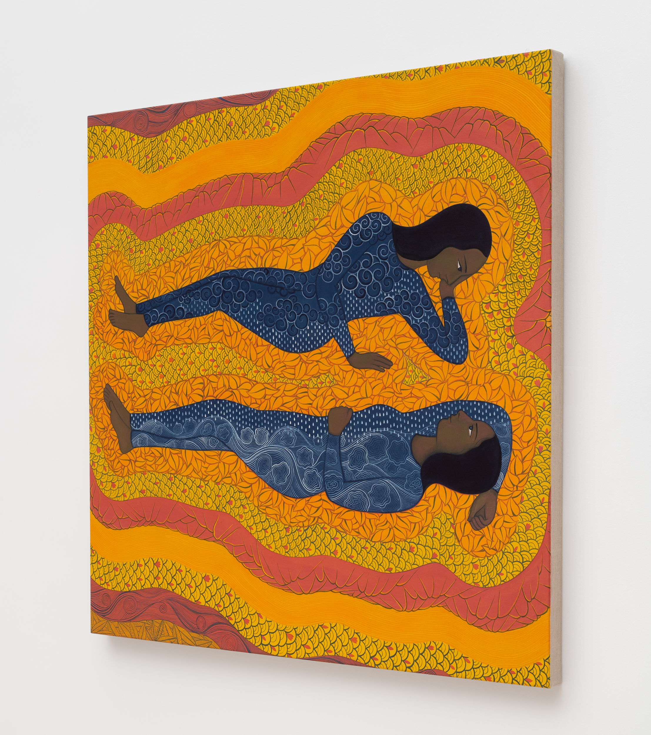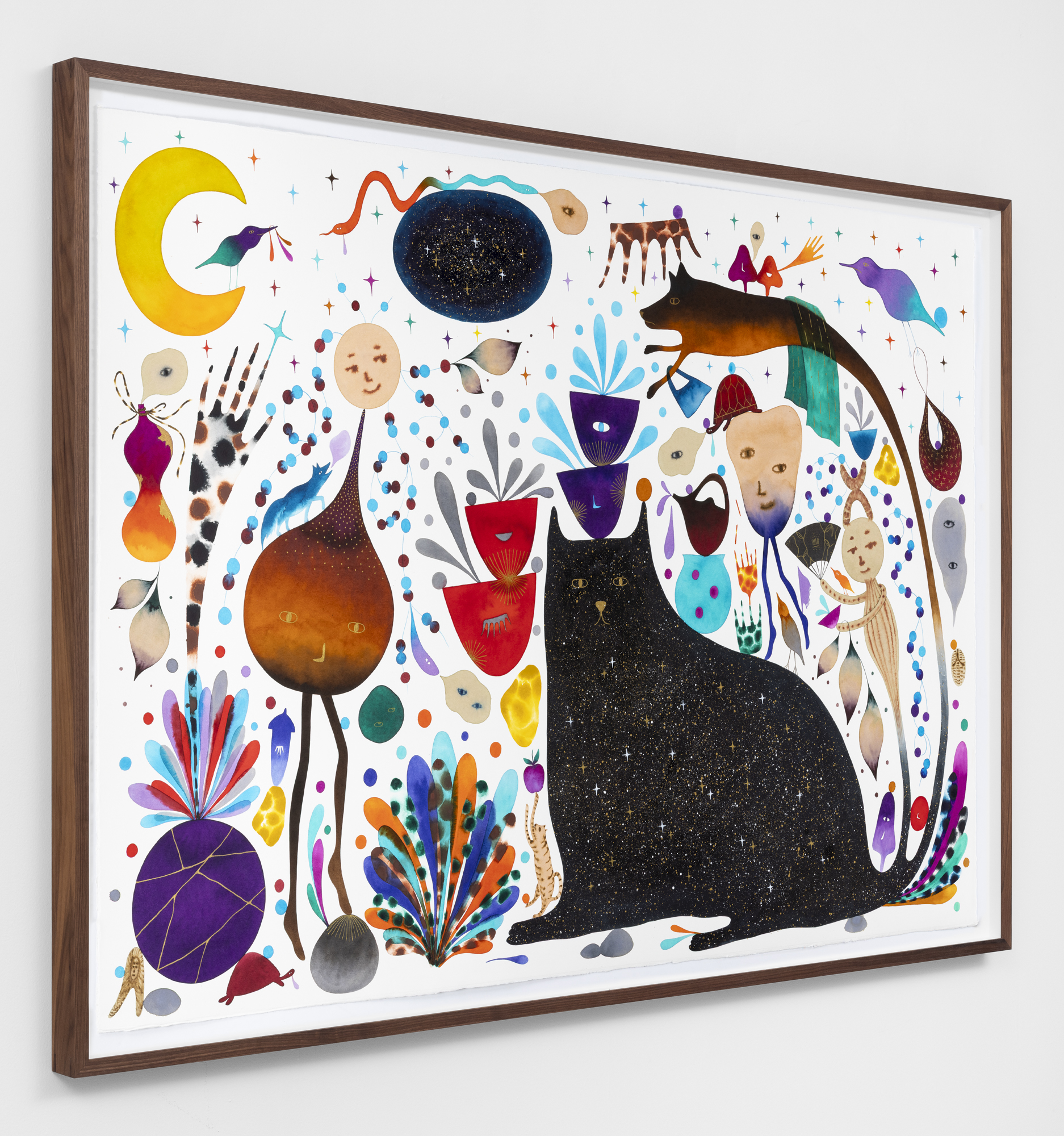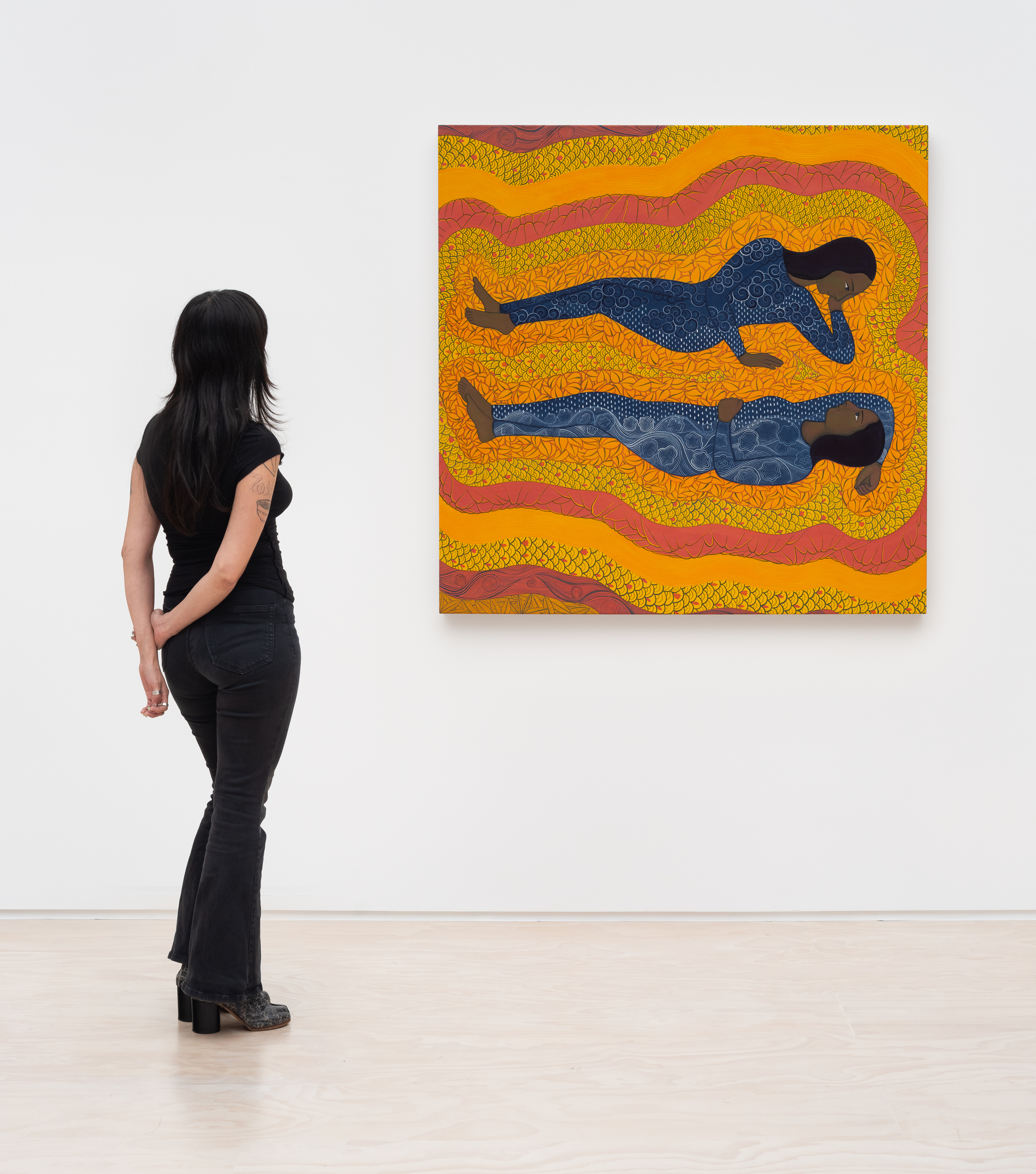 Highlights include a suite of lyrical paintings by Clare Rojas that teeter between geometric abstraction and figuration, evoking states of becoming and personal evolution.