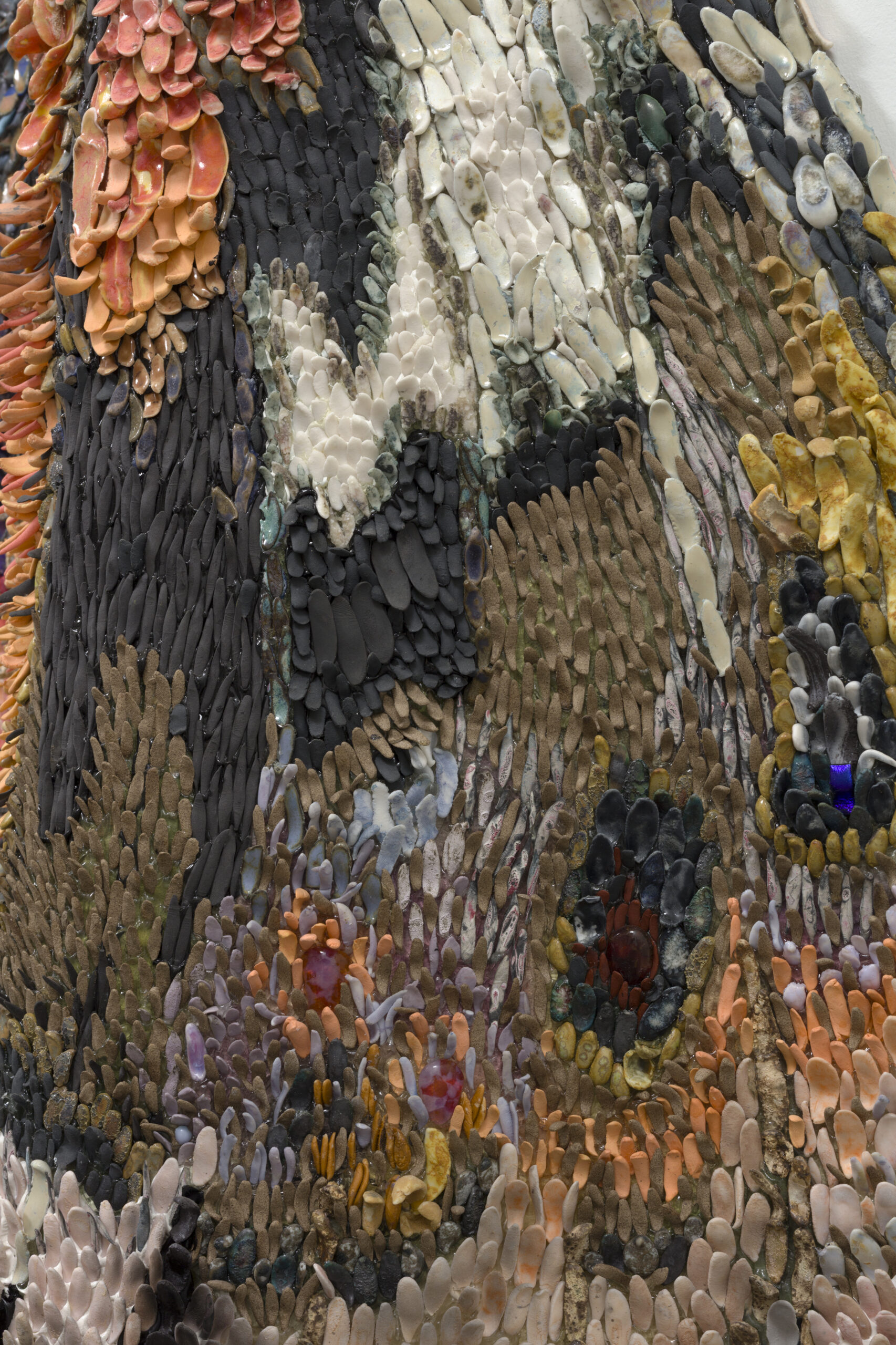 Porcelain, glaze, adhesives, canvas, pigment, and hardware