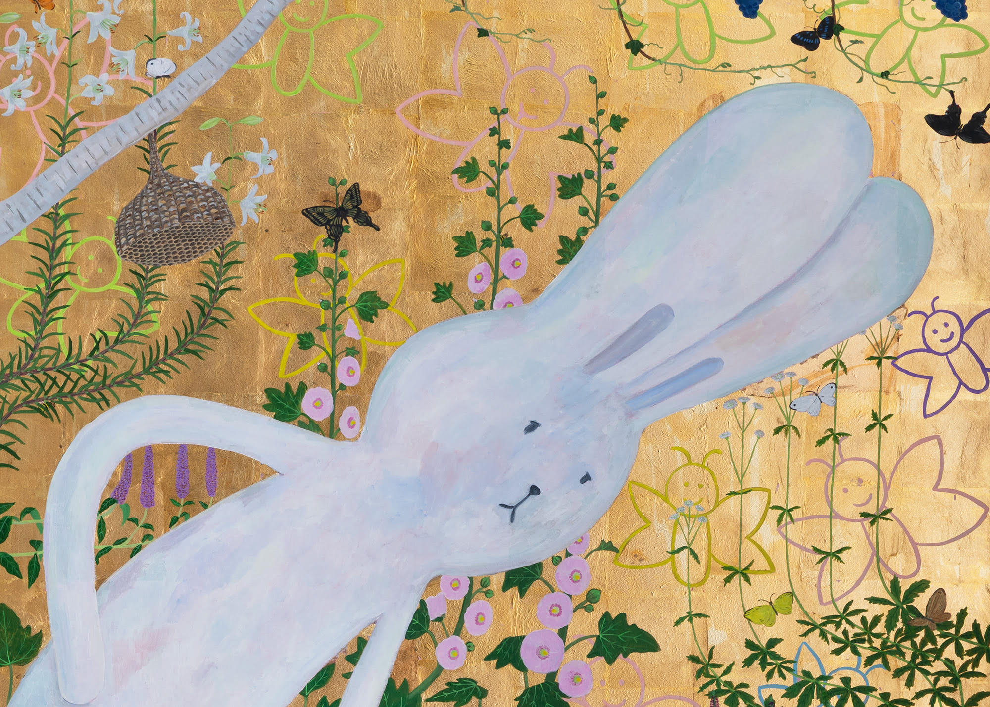 Atsushi Kaga’s Nature’s Resilience (2025) follows his rabbit alter-ego through a lush landscape, teeming with flowers and insects.