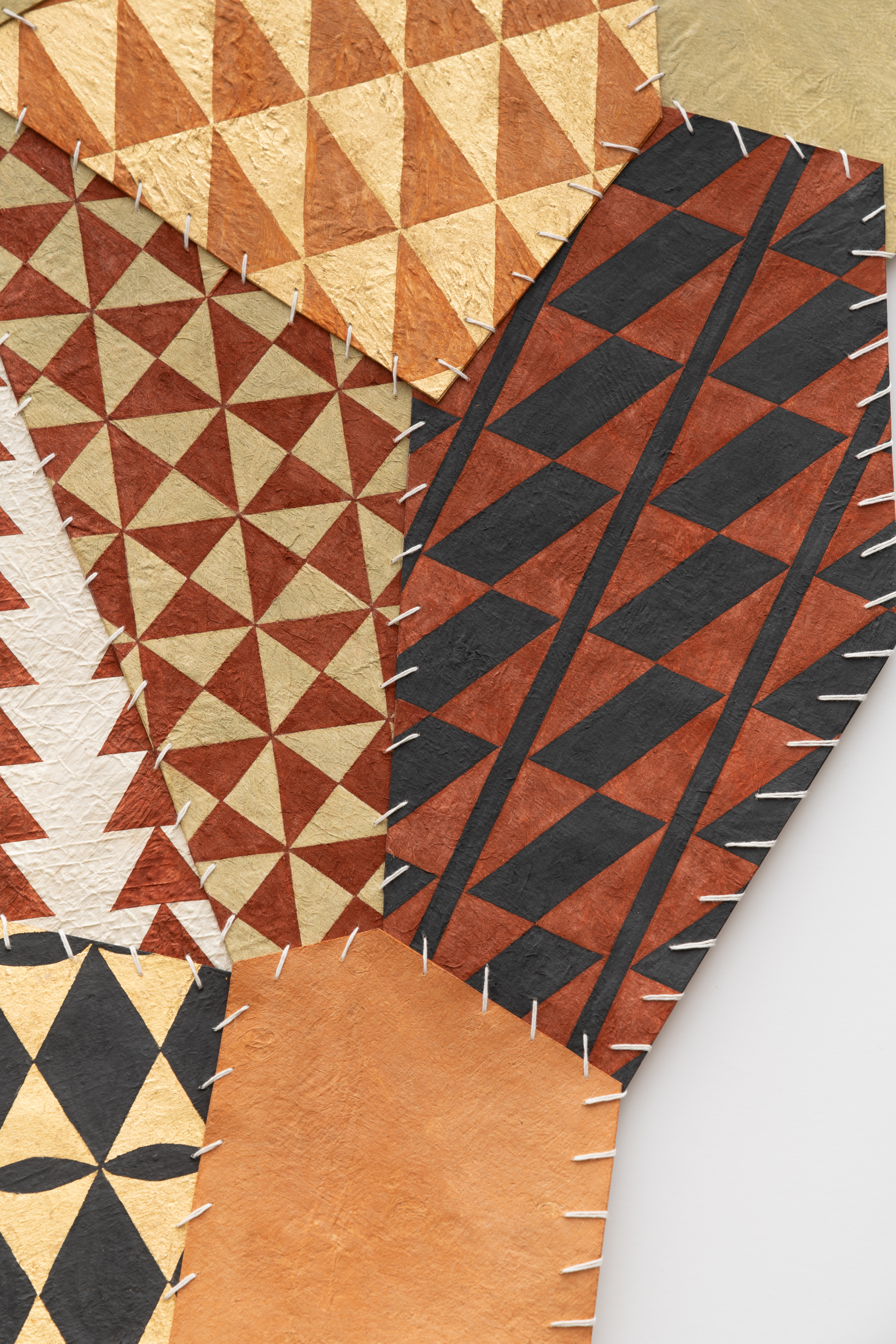 Earth pigments, 24k gold leaf, cotton thread, and kapa (barkcloth)