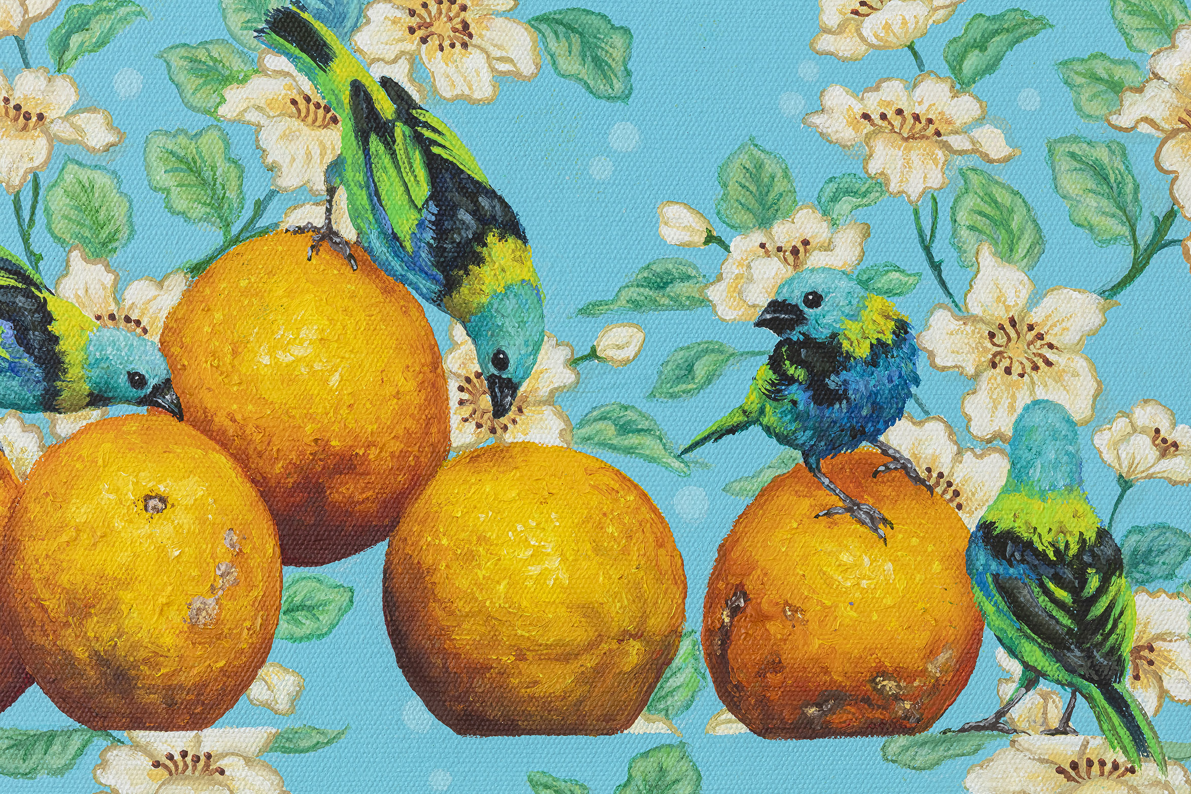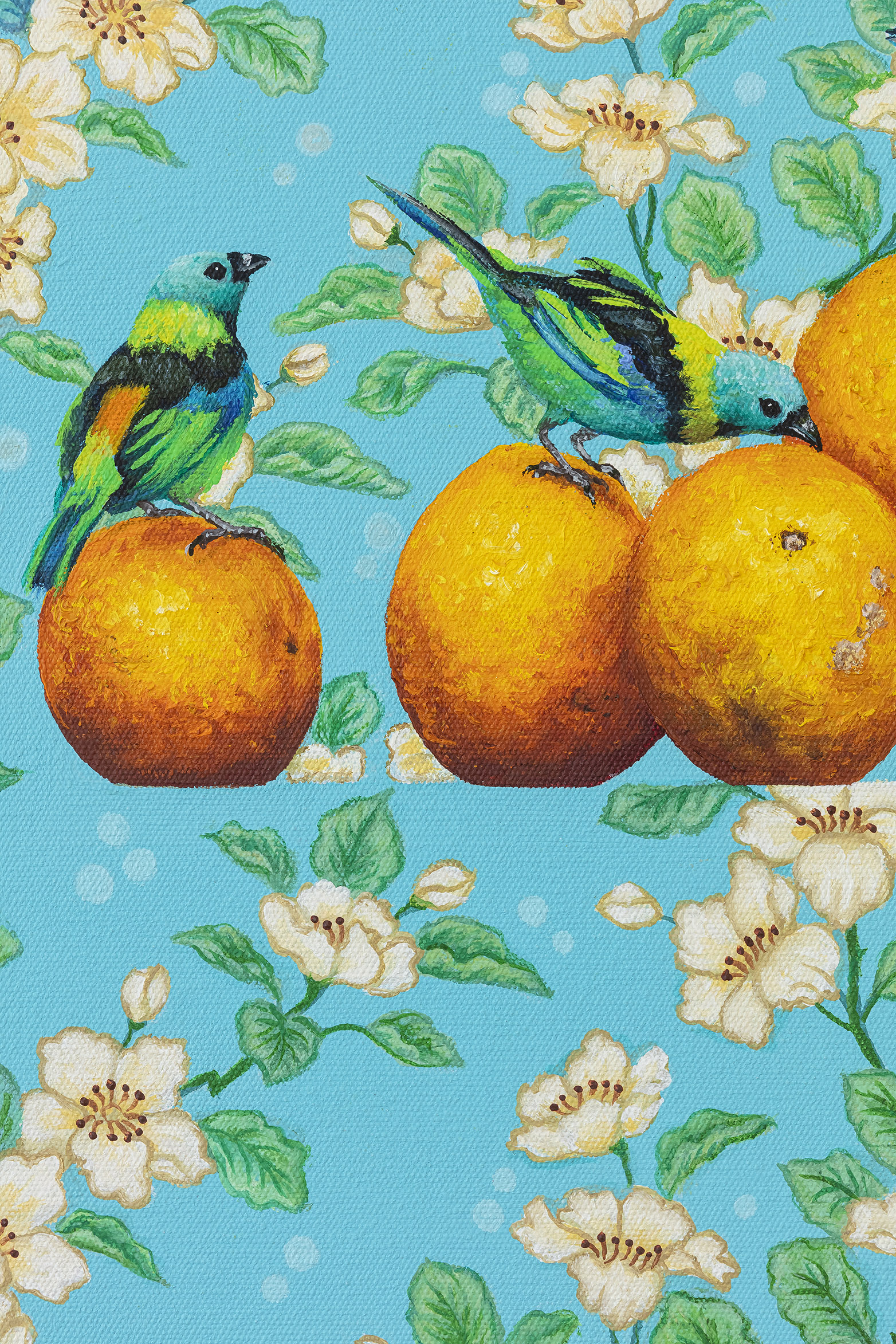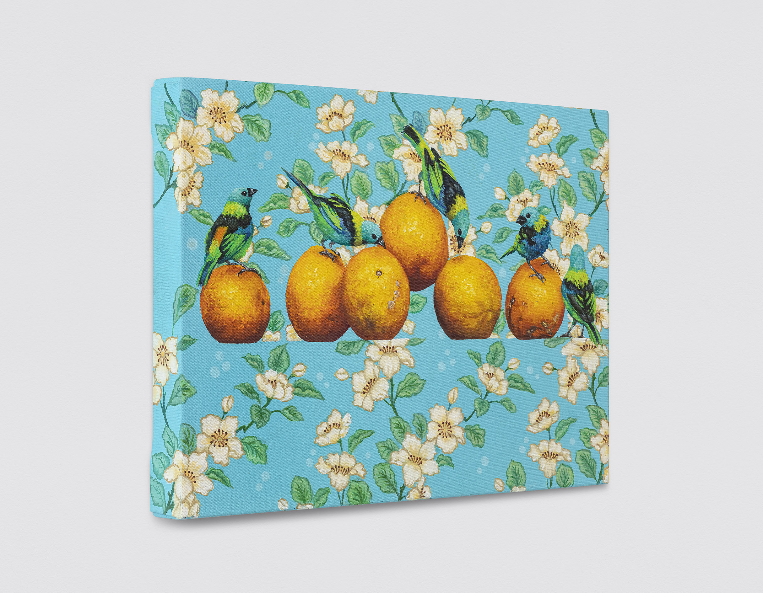 Natureza morta com laranjas e saíra sete cores, 2025
