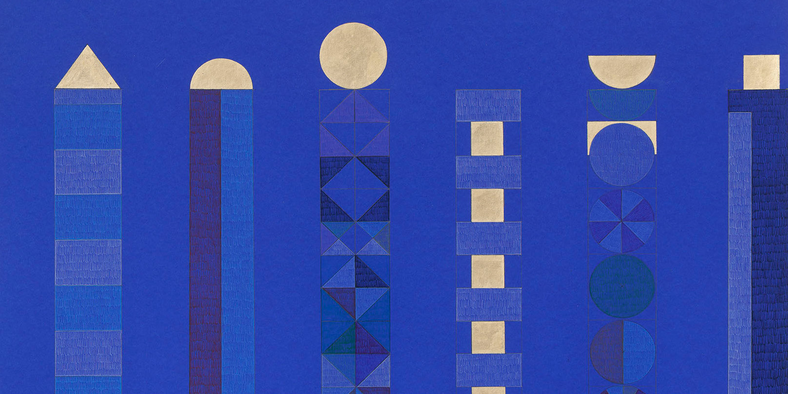 Gold leaf and color pencil on color paper
