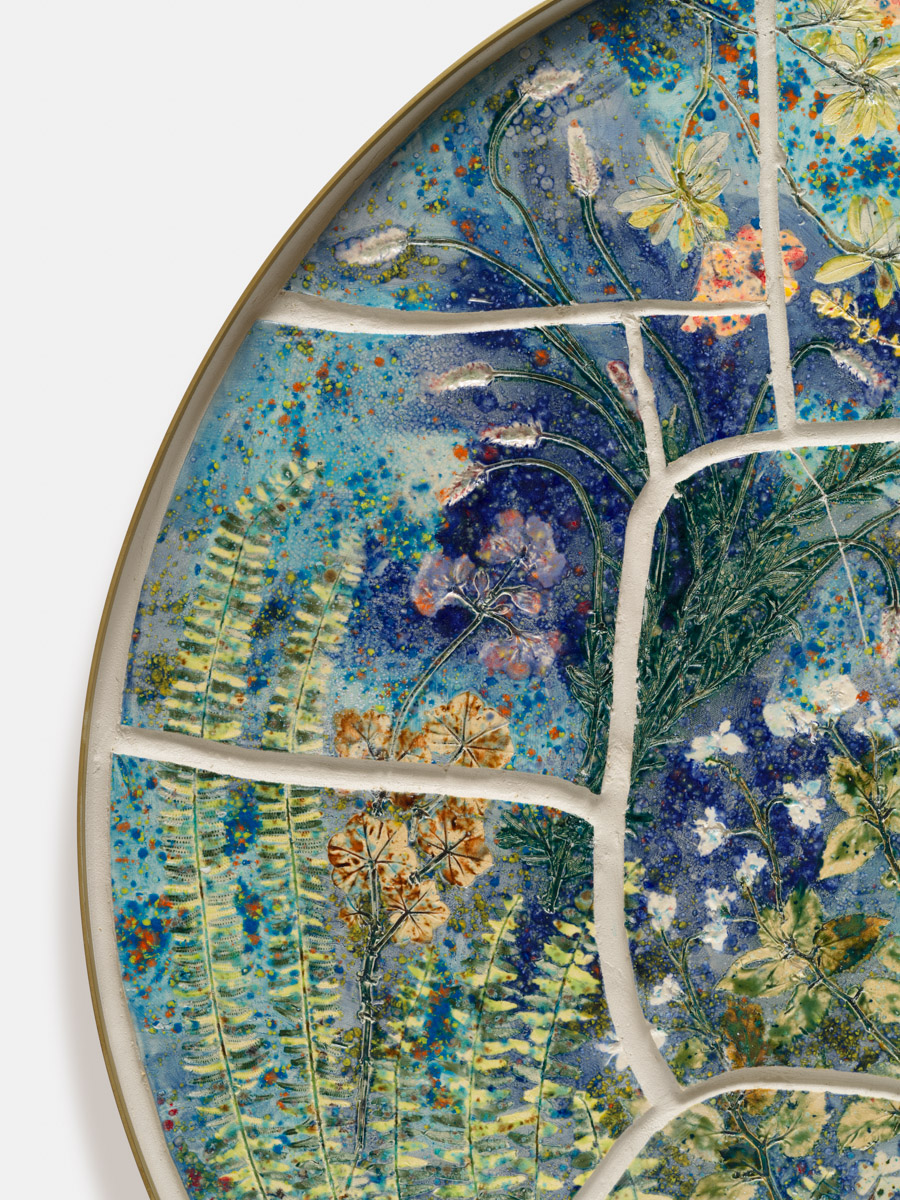 Glazed ceramic with glass in brass frame