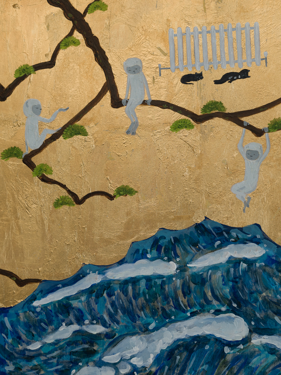 Acrylic and mixed metal leaf on board