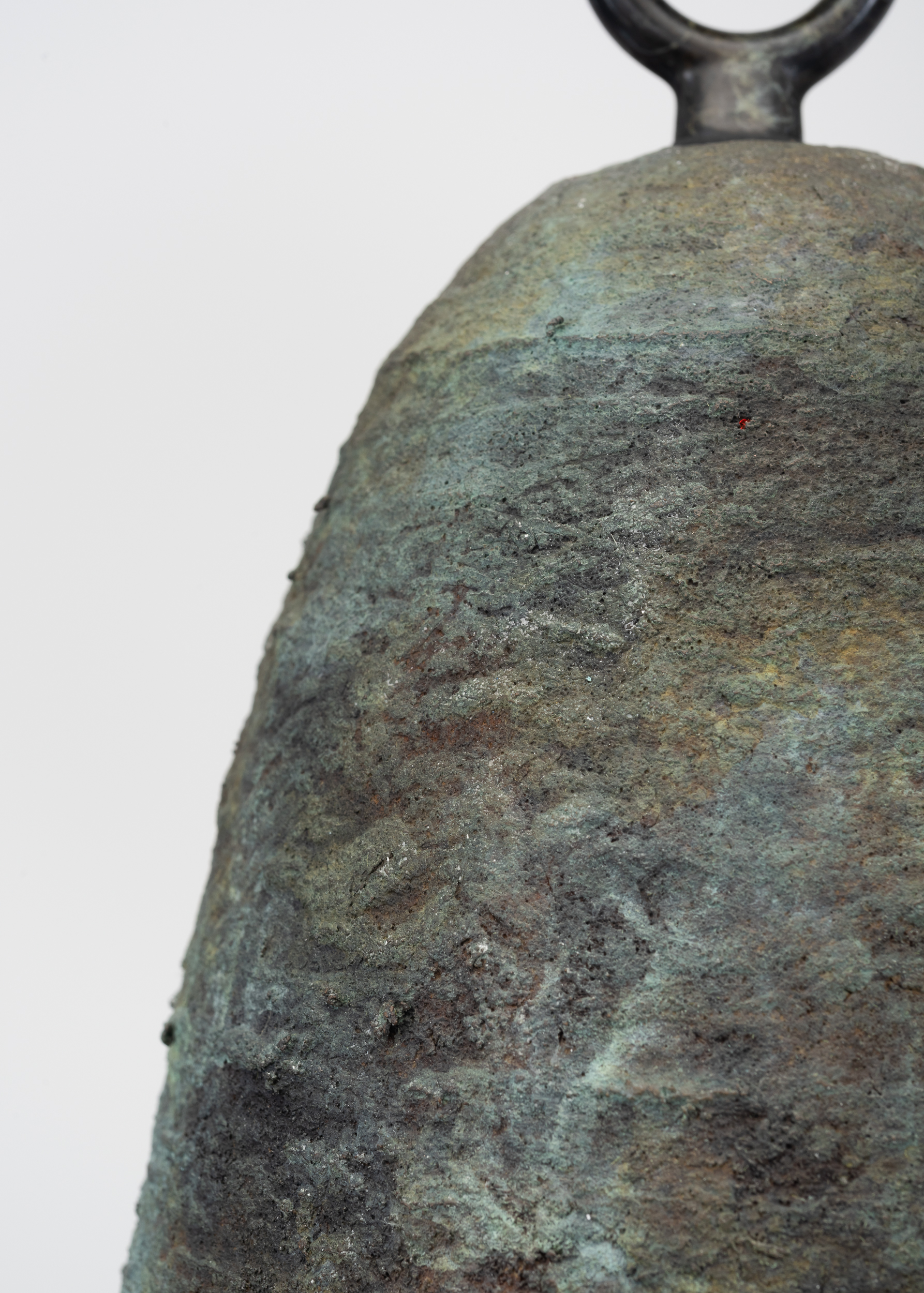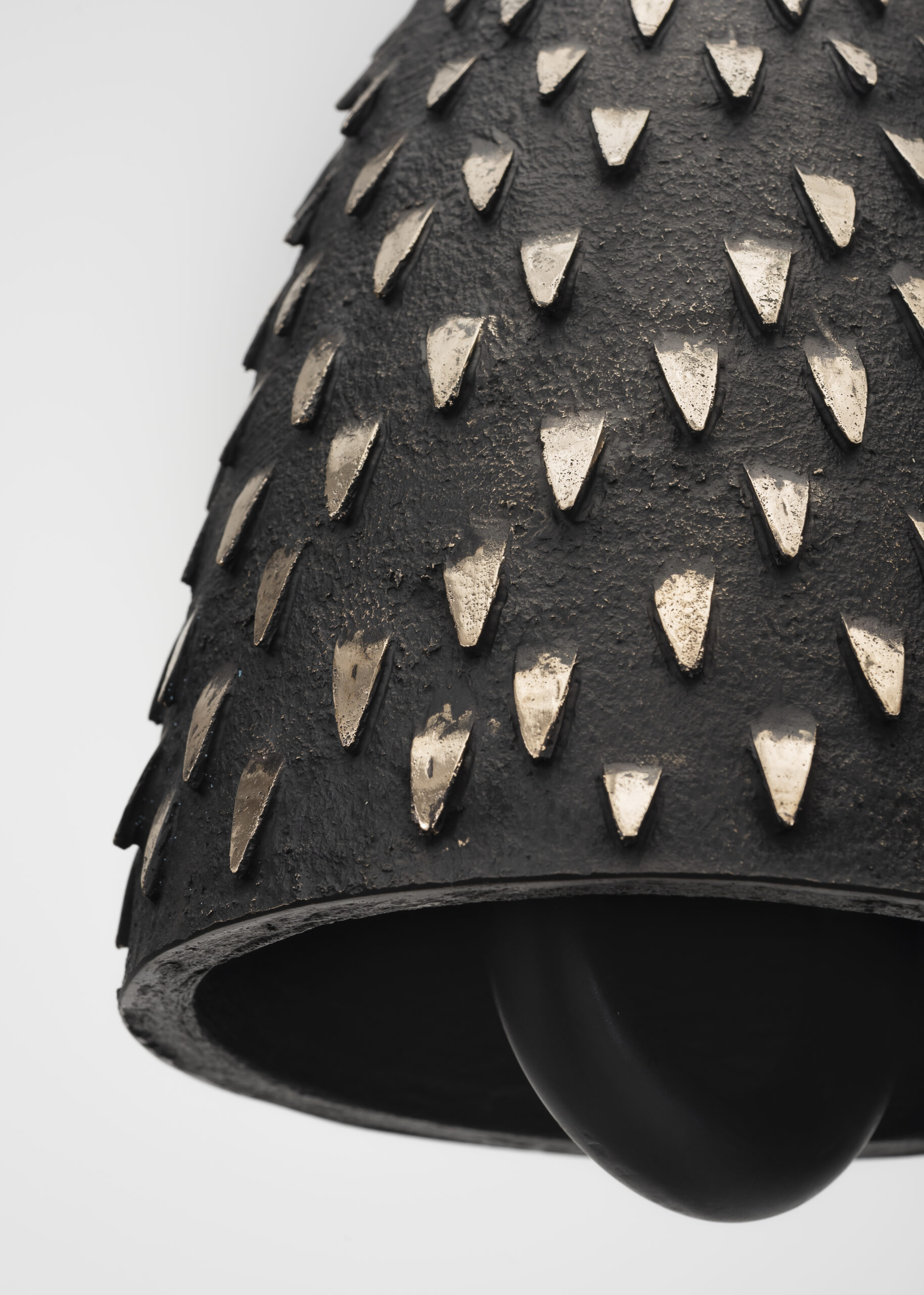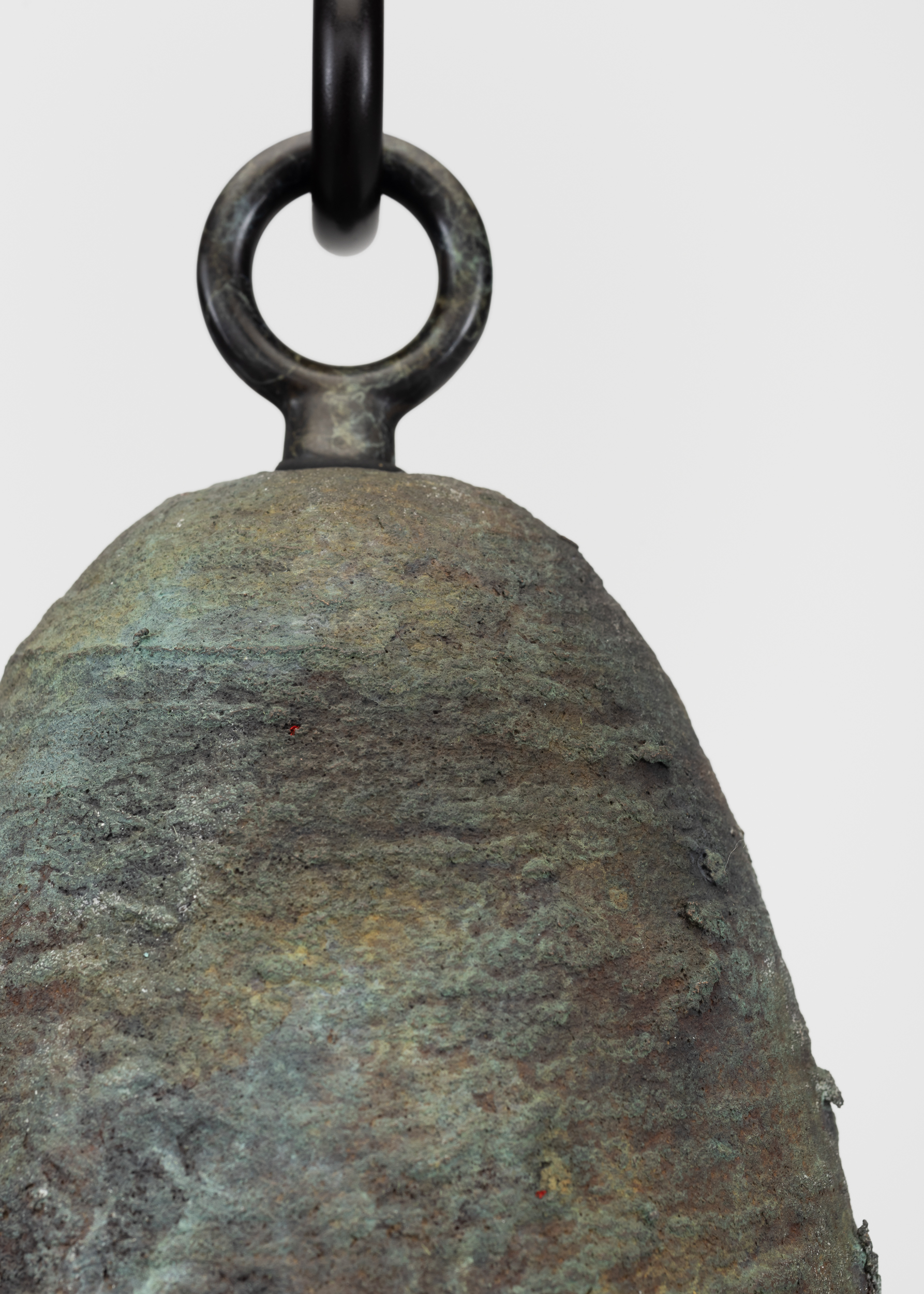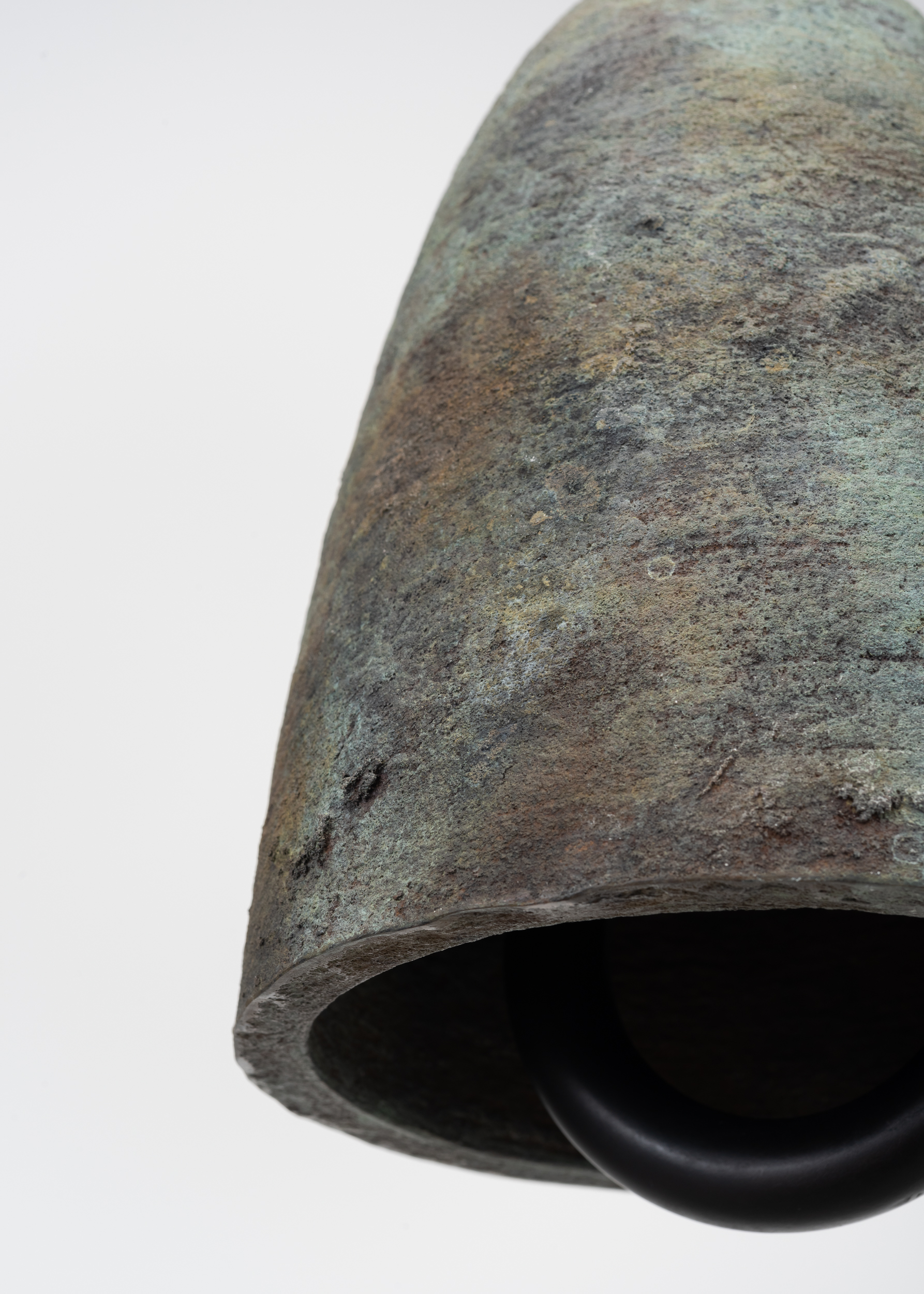 Patinated cast bronze bell, solid bronze clapper, hemp shibari rope, powder-coated stainless steel hardware, powder-coated zinc-plated steel chain