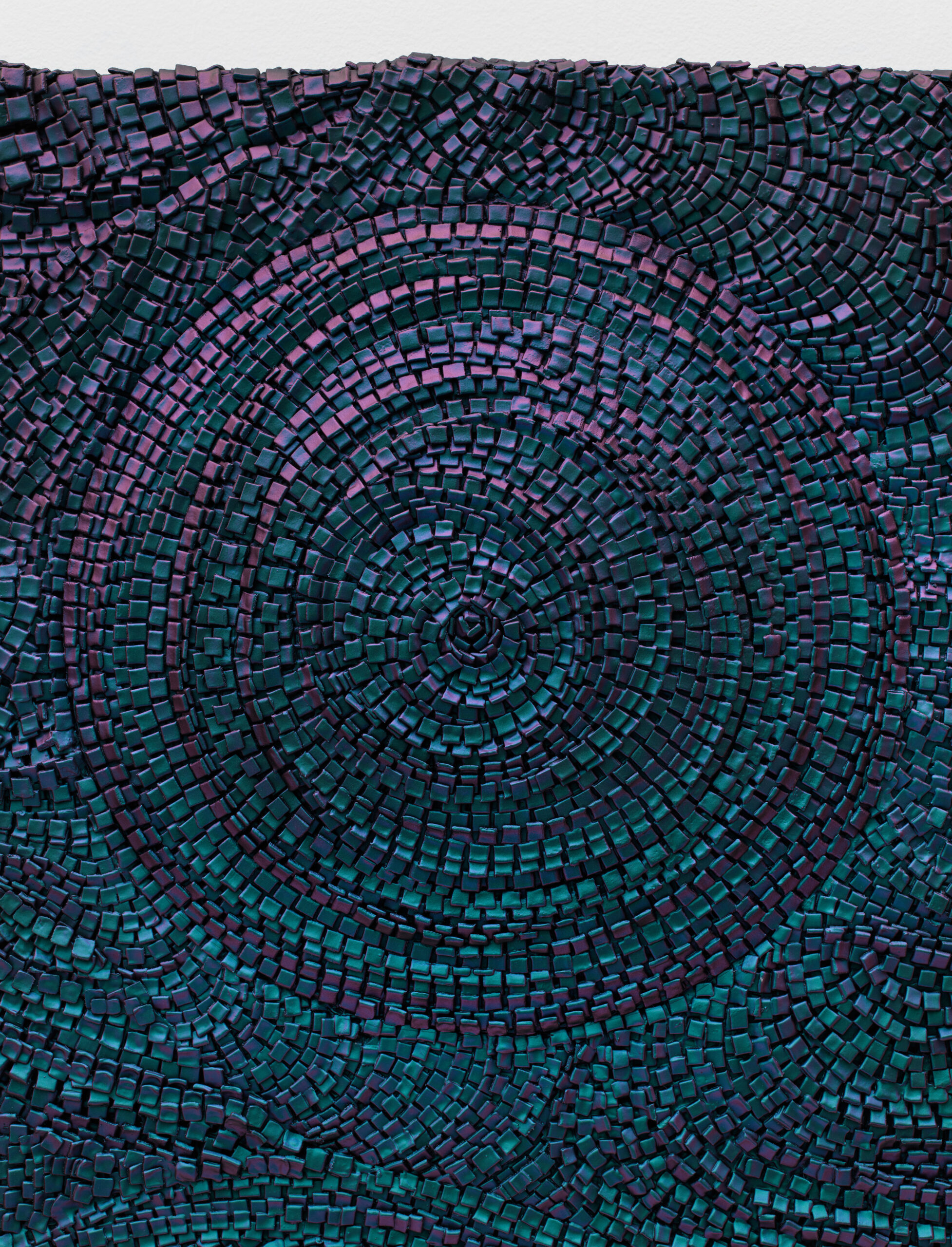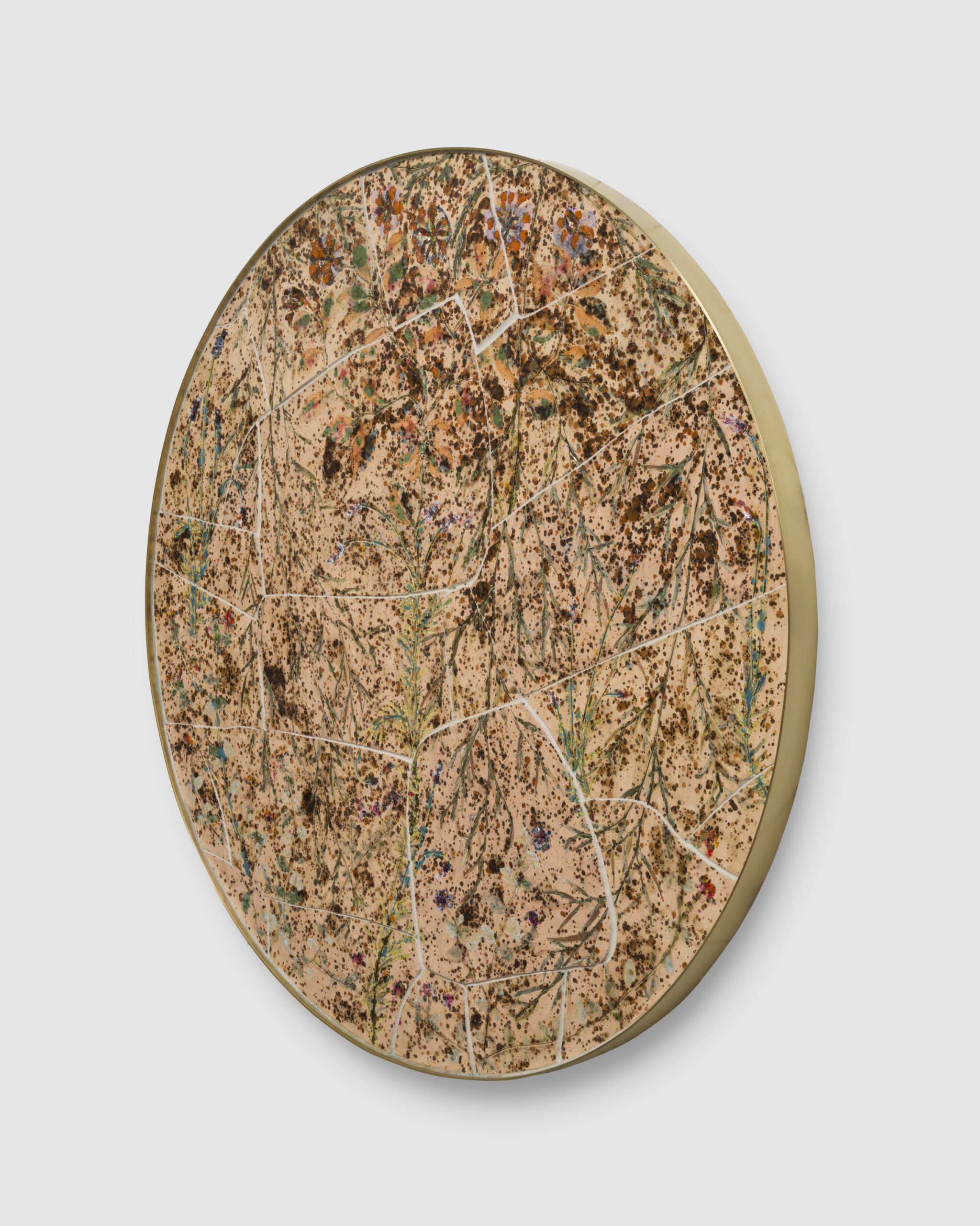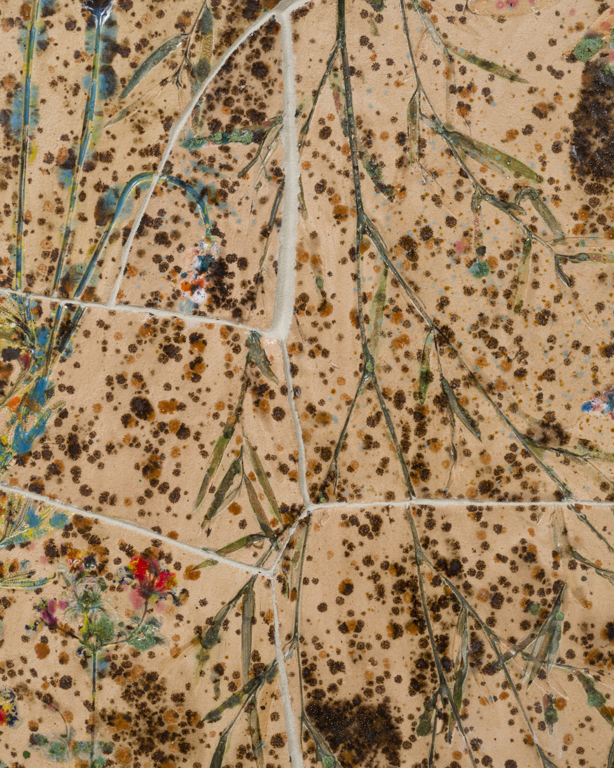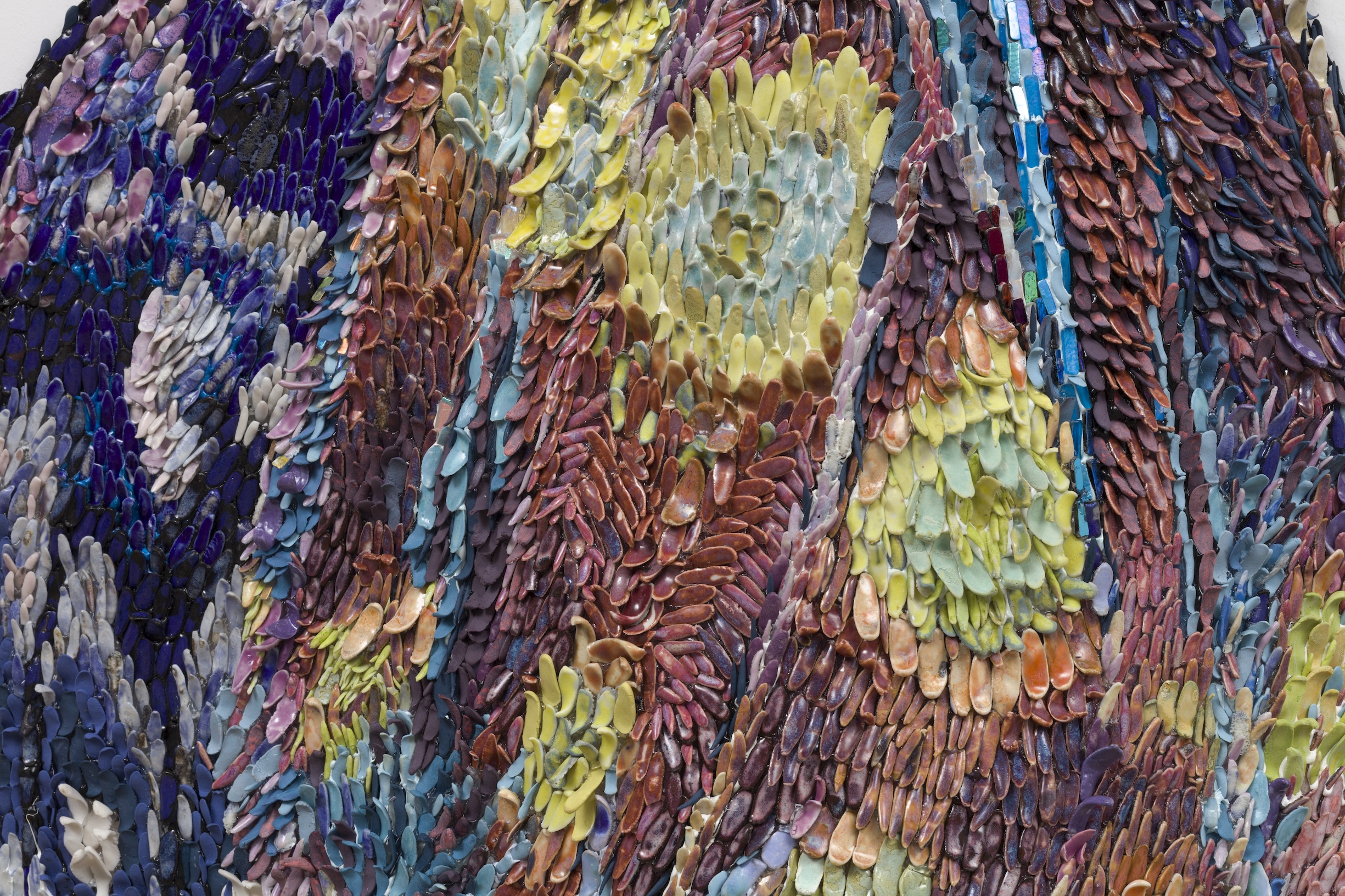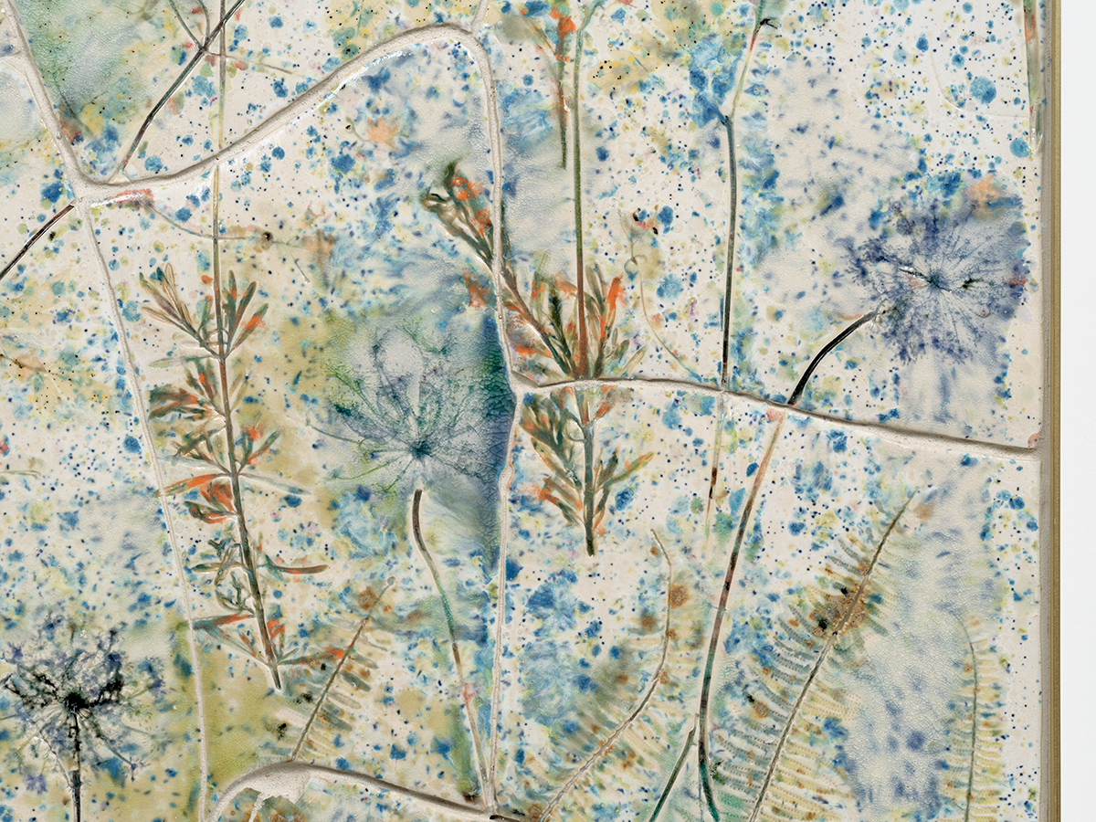 Porcelain, glaze, adhesives, canvas, pigment, glass, and hardware