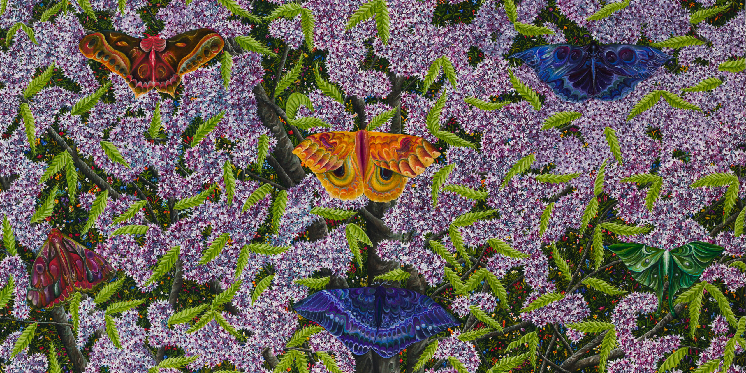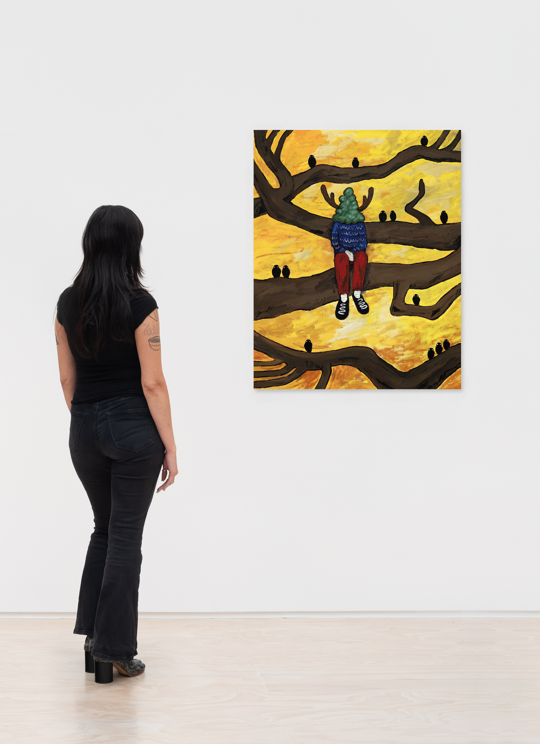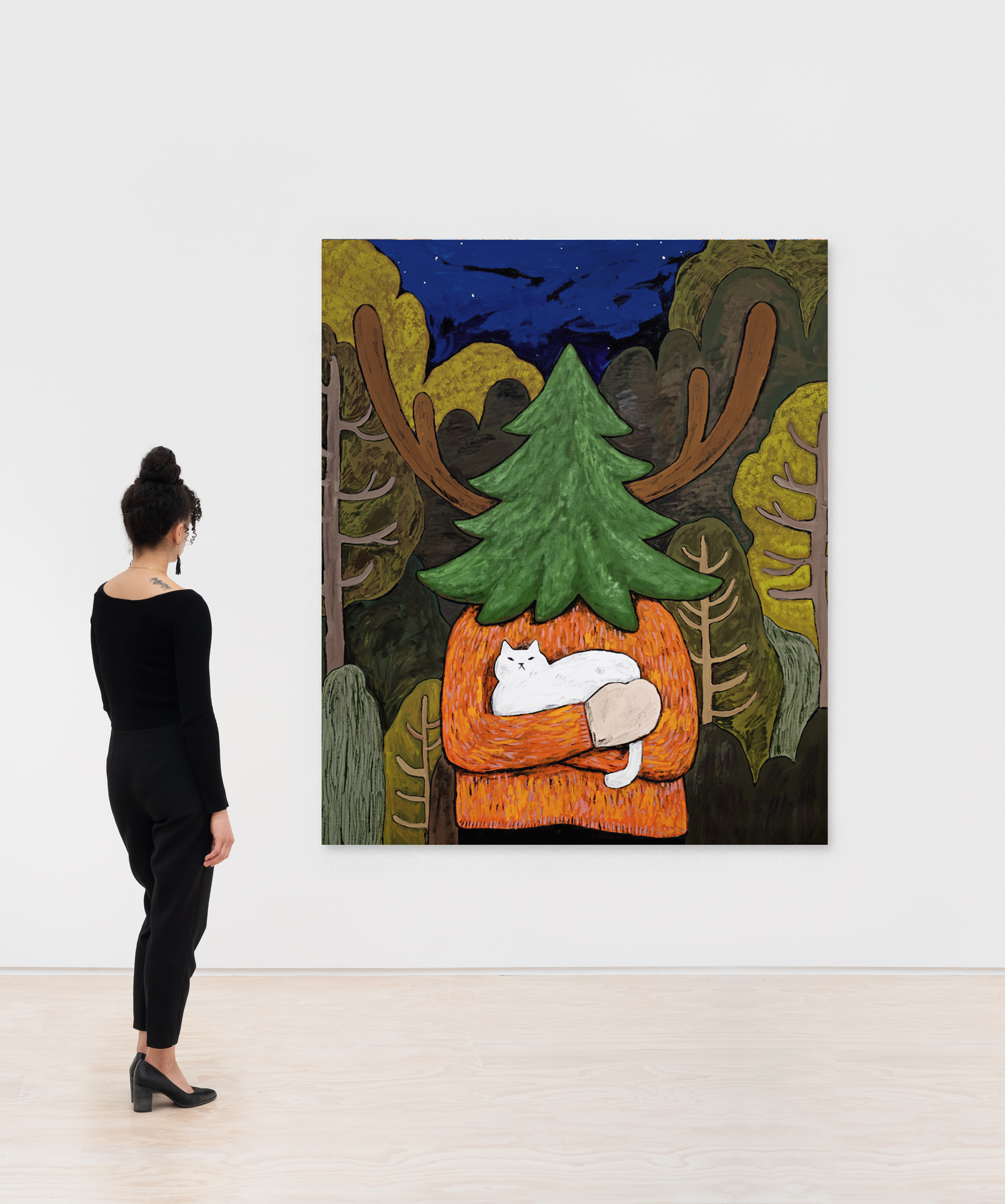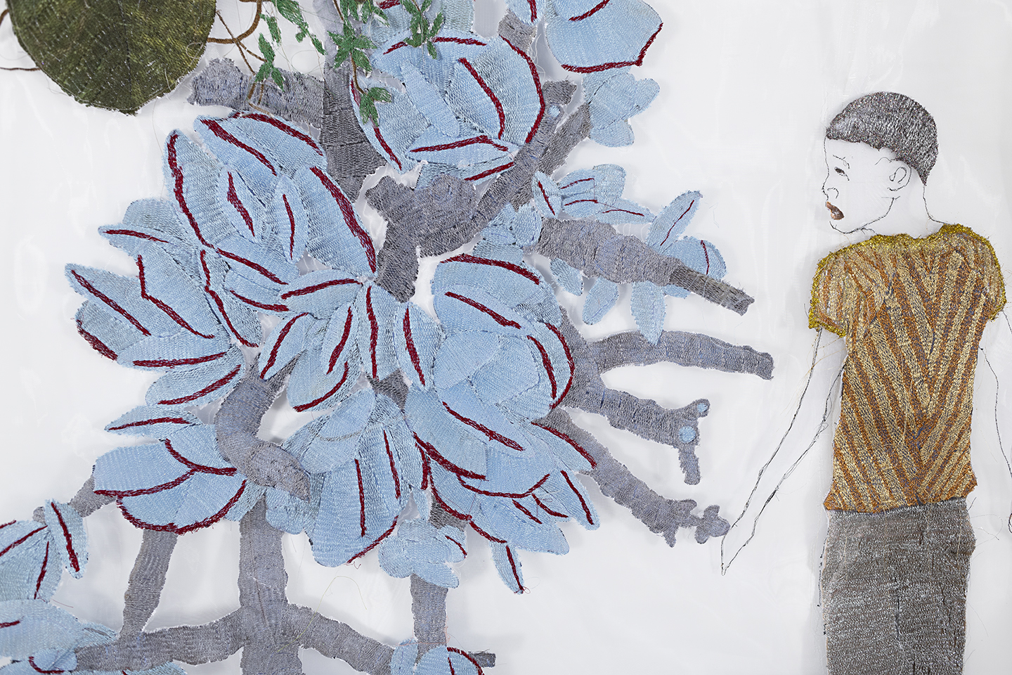Throughout the exhibition, trees function as emotional and psychological terrain. Wood is sometimes a sculptural collaborator, where botanical forms unfurl into intricate ornamentation. The participating artists draw on the material life of trees as much as their imagery. Often incorporating reclaimed wood, bark, and other organic materials, trees are articulated as structures of rootedness, respiration, and growth.