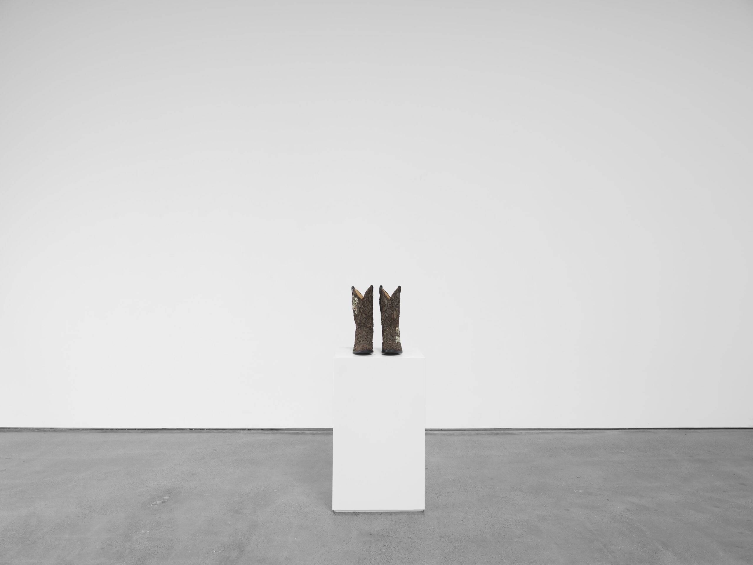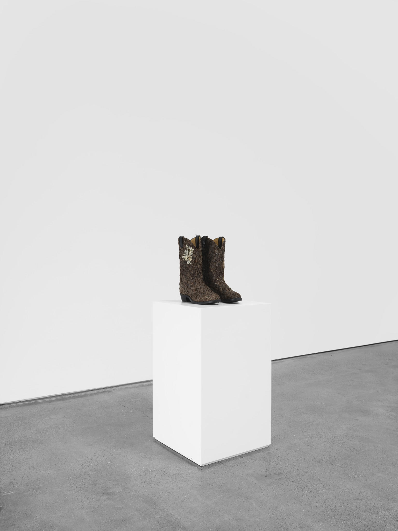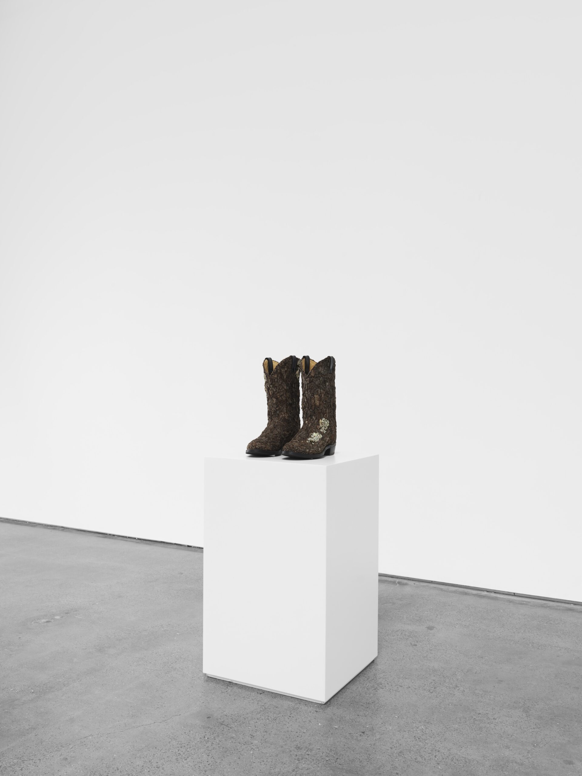 Cowboy boots with tree bark