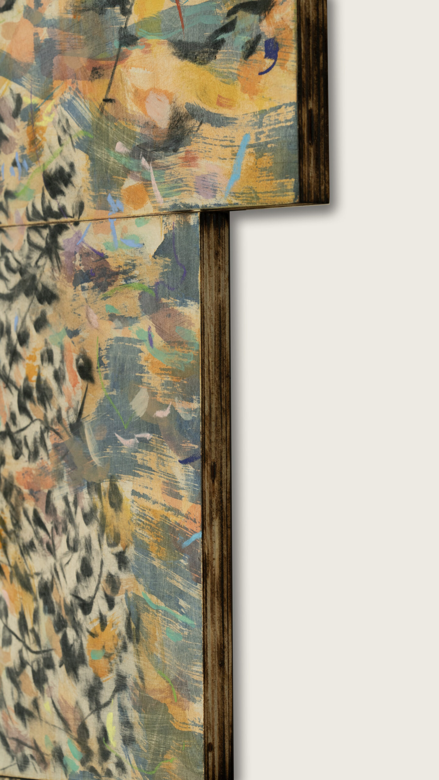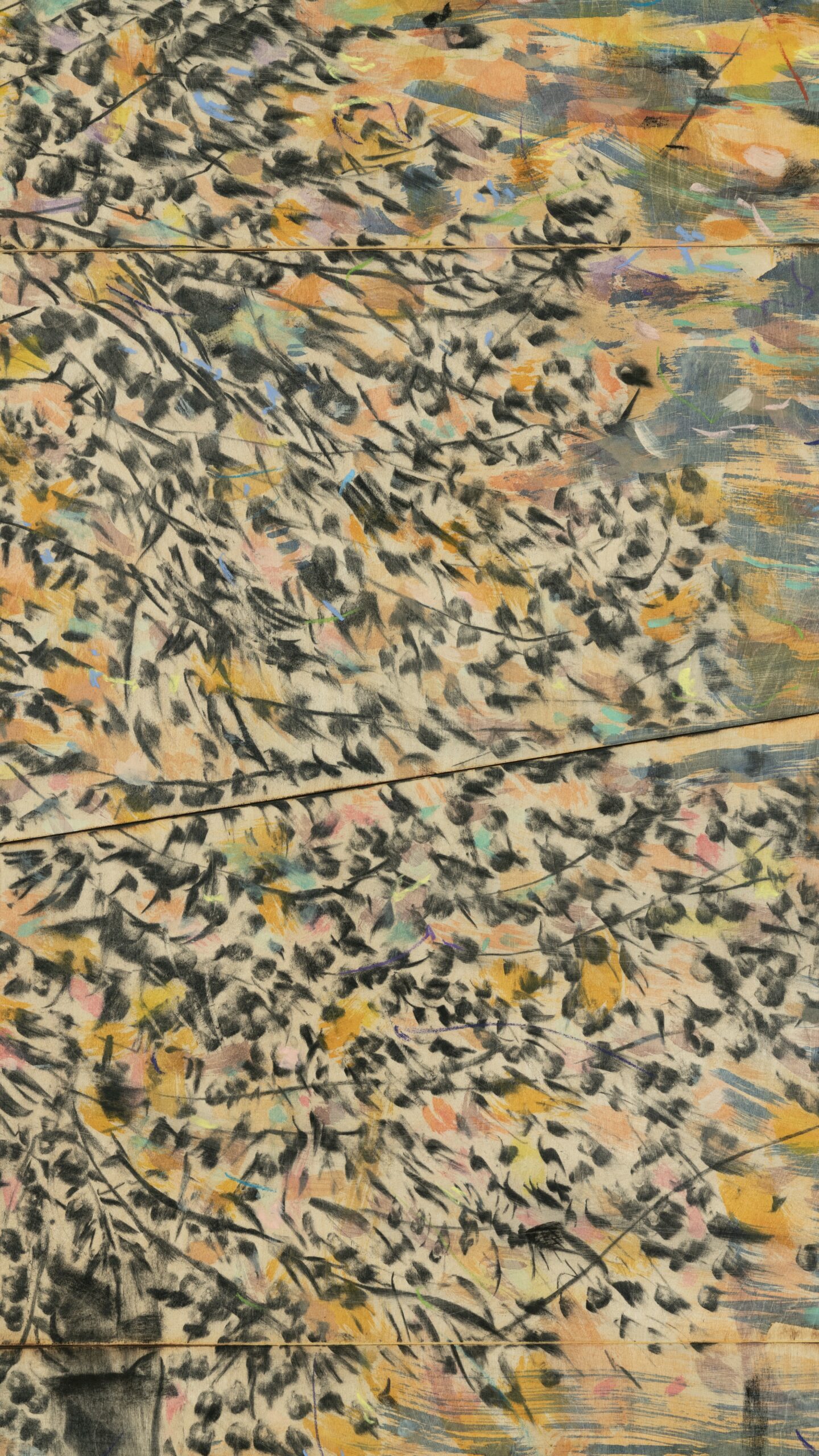 Charcoal, acrylic and pastel on plywood